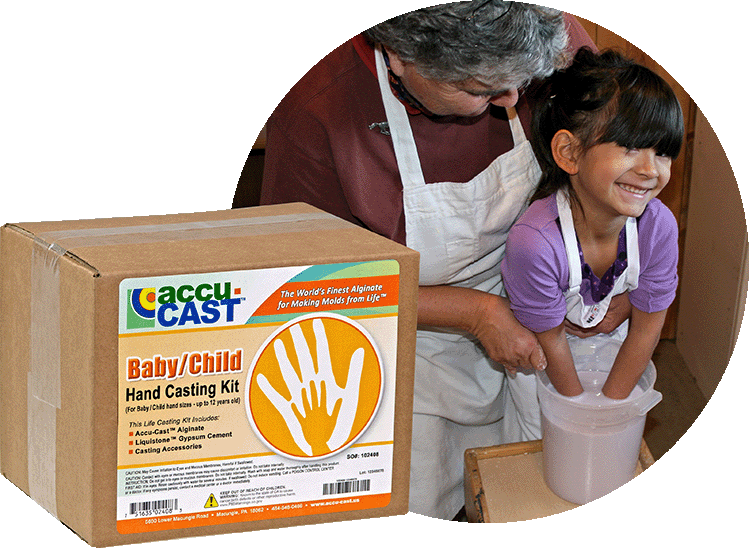 aby's first hand casting! The complete Baby/Child Hand Casting Kit is an easy and fun way to create a durable memento of your little one's hand or foot. Great as a gift for relatives! Add interest by painting or decorating your cast, or by having your subject hold a favorite object while molding! An additional bag of alginate included, should you need to re-make the mold.
